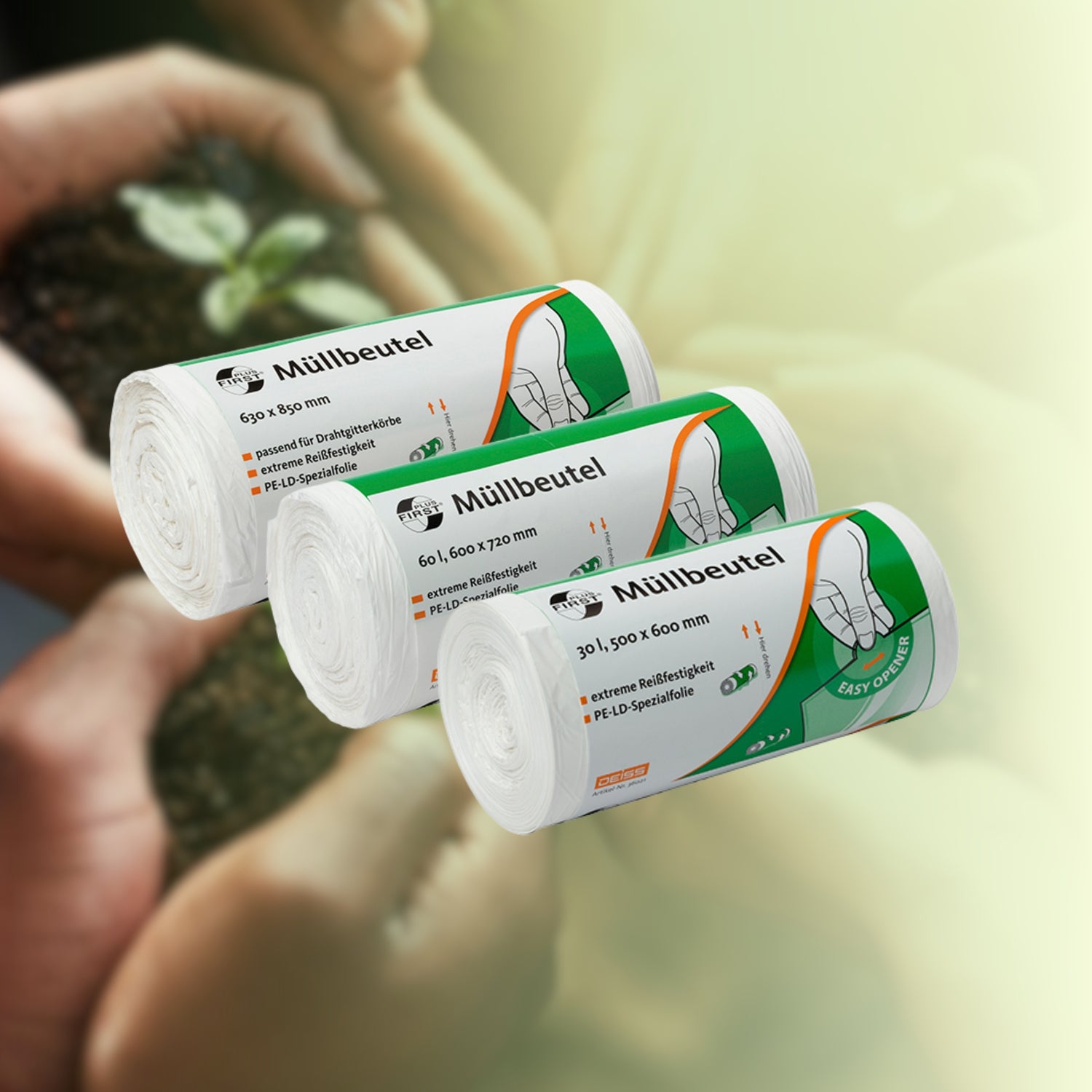 Bei DEISS stehen verantwortungsvolles Handeln und der Schutz unserer Umwelt im Mittelpunkt. Müllsäcke und Abfallbeutel sind für die professionelle Entsorgung unverzichtbar – deshalb setzen wir bei der Entwicklung unserer Produkte auf ressourcenschonende Materialien, effiziente Produktionsprozesse und innovative Recycling-strategien, um den ökologischen Fußabdruck deutlich zu reduzieren.