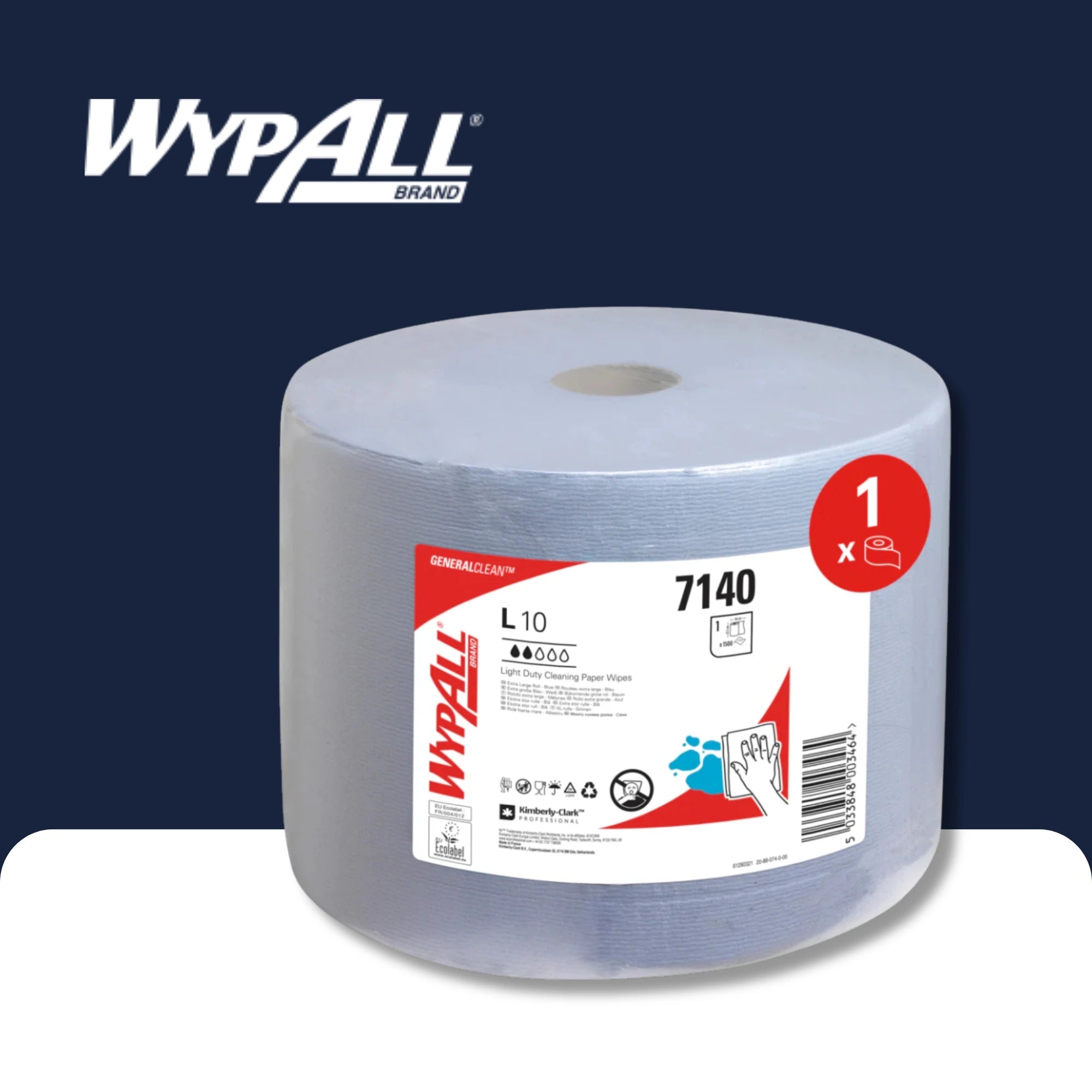 Forgalmazó:Kimberly-Clark GmbHWypall® L20 papír törlése a karbantartáshoz - Nagy szerep - extra széles / kék - 1 tekercs x 500 lap | Karton (1 tekercs)