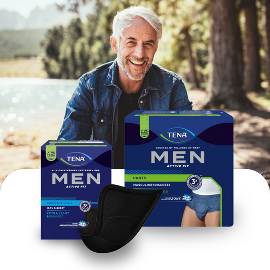 A Tena férfiak aktív védőpajzsok Kínáljon diszkrét védelmet az enyhe hólyag gyengeséggel rendelkező férfiak számára. Ez Inkontinencia betétek Kínál megbízható szívóerőt, és tökéletesen illeszkednek az aktív mindennapi élethez.