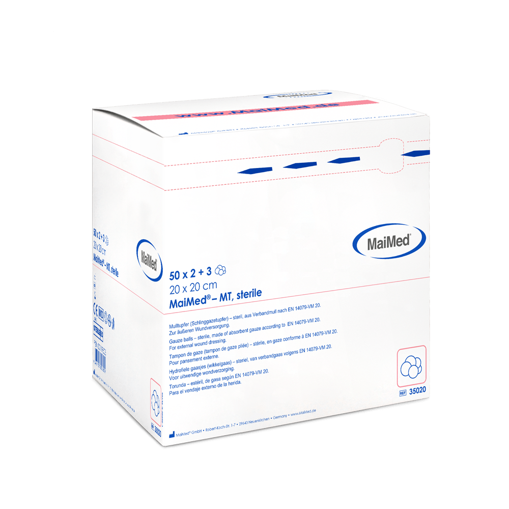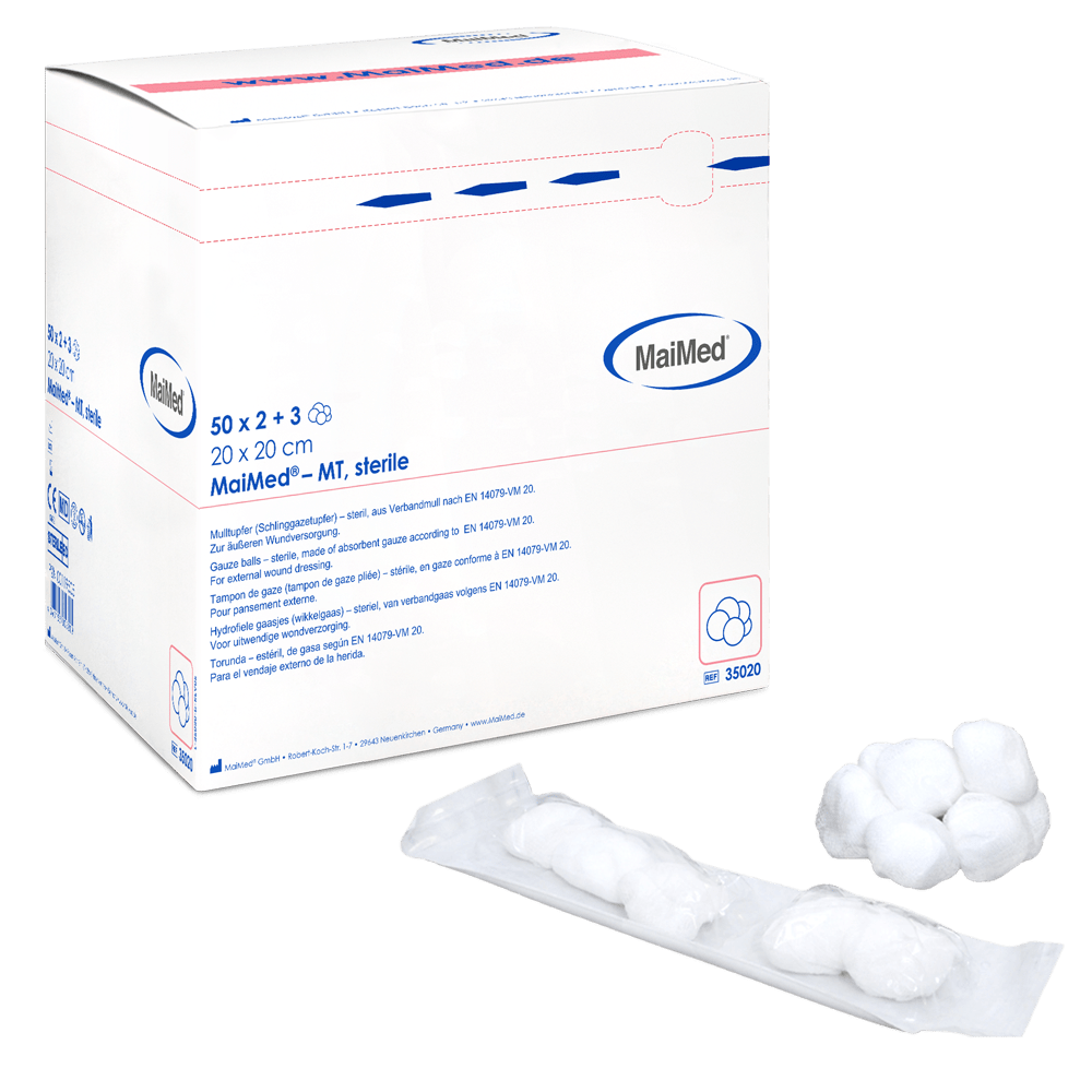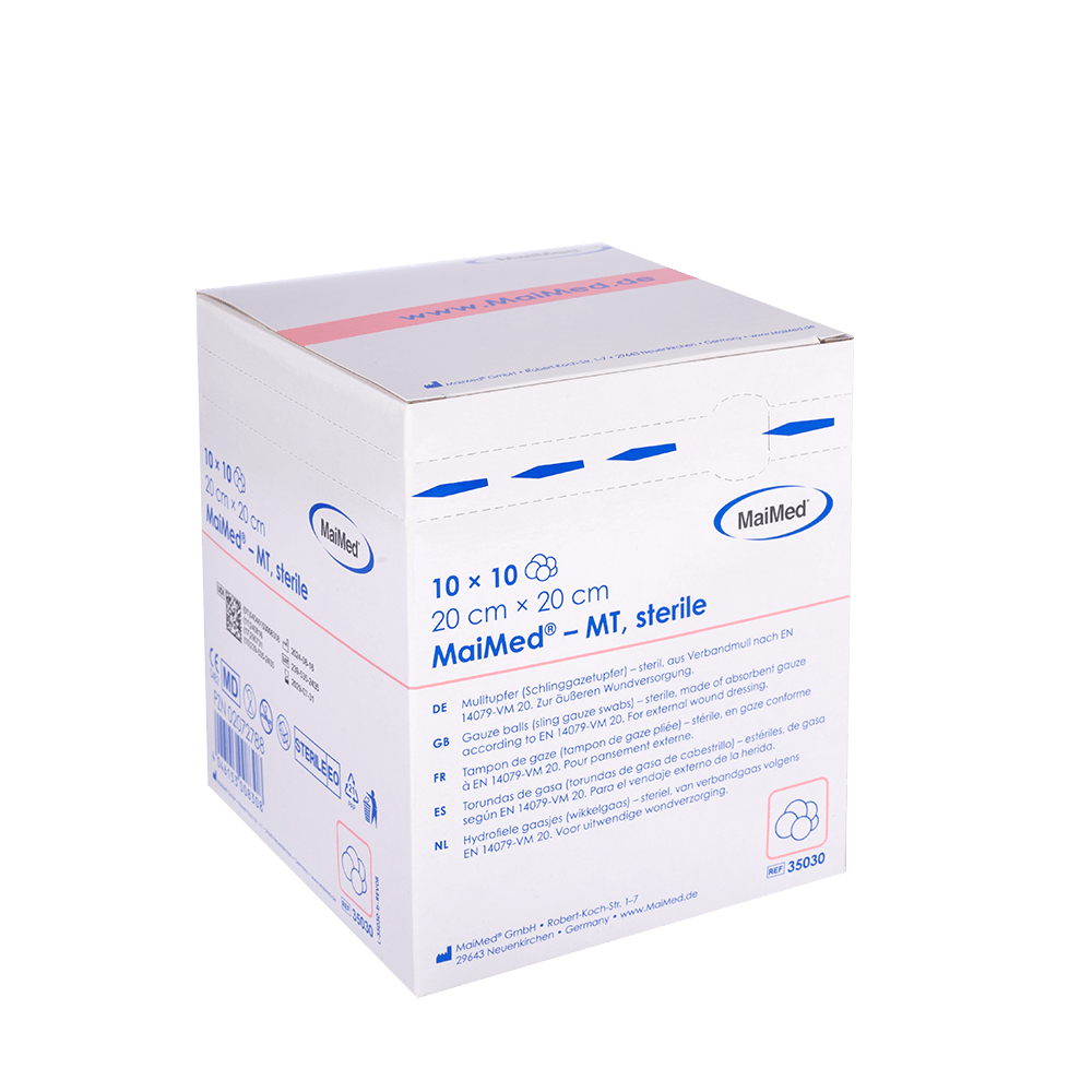 A MaiMed-MT-steril Mulltupfer kiváló minőségű, steril tamponok orvosi alkalmazásokhoz, különböző méretekben és csomagolási változatokban.