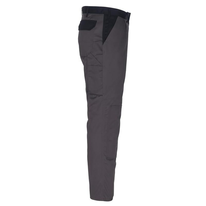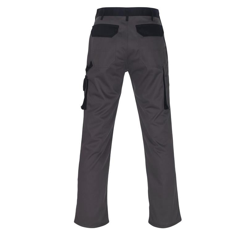 Die MASCOT® Torino Hose in anthrazit/schwarz ist die perfekte Wahl für professionelle Handwerker und Arbeiter, die Wert auf Qualität und Funktionalität legen. Diese zweifarbige Hose ist mit dreifachen Kappnähten an den Beinen und im Schritt ausgestattet, was sie besonders robust und langlebig macht. Sie verfügt über zahlreiche Taschen, darunter verstärkte Gesäßtaschen mit Patte und Klettverschluss, eine Münztasche, eine Schenkeltasche mit Patte und Klettverschluss, sowie eine verstärkte Zollstocktasche mit einer kleinen Außentasche. Die höhenregulierbaren Knietaschen bieten zusätzlichen Komfort und Schutz. Diese Hose entspricht dem OEKO-TEX® STANDARD 100 und ist nach dem ProWash® - EN ISO 15797 Standard zertifiziert.