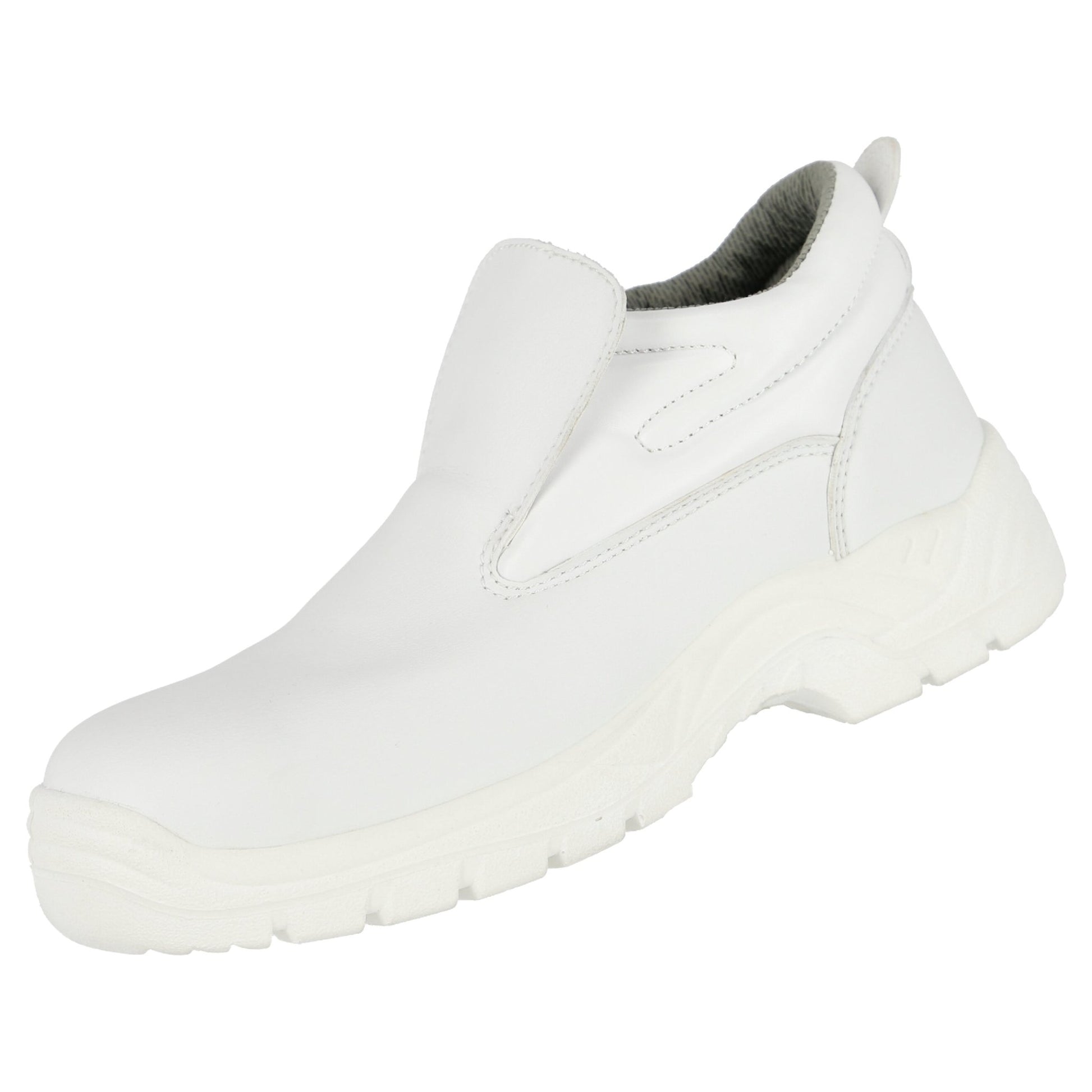 Der NITRAS CLEAN STEP MID SL Sicherheitsslipper ist die ideale Wahl für alle, die Wert auf Sicherheit und Komfort legen. Gefertigt aus strapazierfähigem Kunstleder in strahlendem Weiß (Farbcode: 1100), bietet dieser Slipper nicht nur ein attraktives Design, sondern auch eine widerstandsfähige PU/PU-Laufsohle für bestmögliche Rutschhemmung (SR). Die ergonomisch geformte Einlegesohle und der gut gepolsterte Schaft sorgen für höchsten Tragekomfort. Der Sicherheitsslipper ist mit einer Stahl-Zehenkappe ausgestattet und erfüllt die DGUV Regel 112-191. Er gehört zur PSA-Risikokategorie II und ist in den Weiten 11 erhältlich.